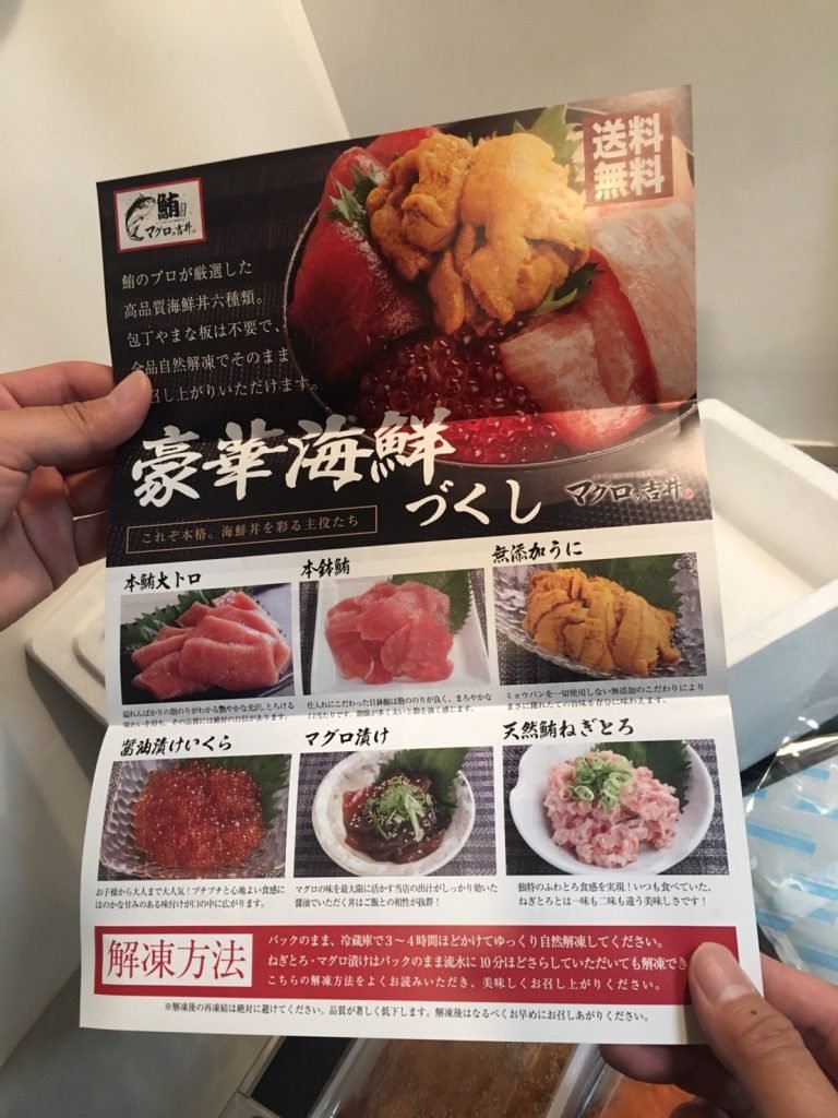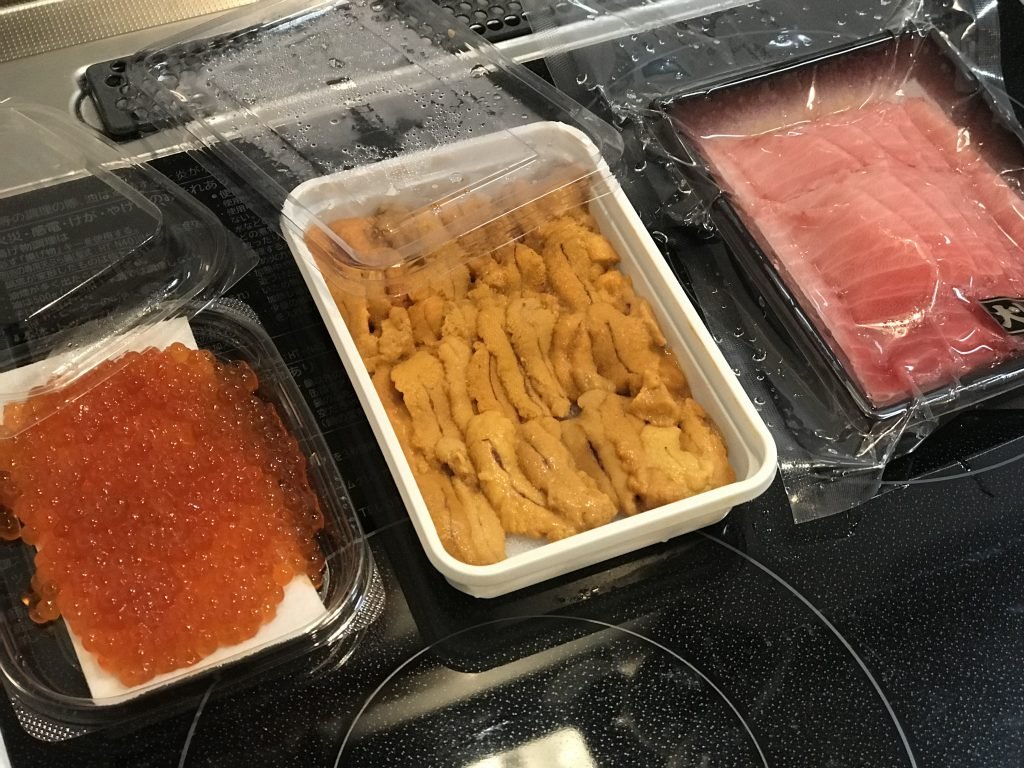 同梱物では主に2種類あり 切り身が入ったトレーまたは商品がそのまま入った 脱気包装のタイプとウニやイクラのパックタイプがあります。