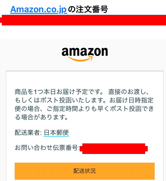 ちなみに伝票番号は実在するもの。メールが来た2時間程度前に配達済みになっていました。