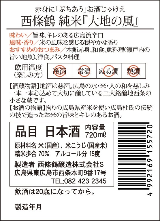 広島地酒の原点に帰り、広島の風土、食材との相性を徹底的に見直し、Classicな広島の味わいを大切にしながら、現代の味わいModernを融合させ、広島のソウルフードお好み焼きをはじめ、瀬戸内の魚介類、広島の食材、食事とあわせて美味しく召し上がれるお酒を醸して行くことを目標として酒造りに励んでいます。