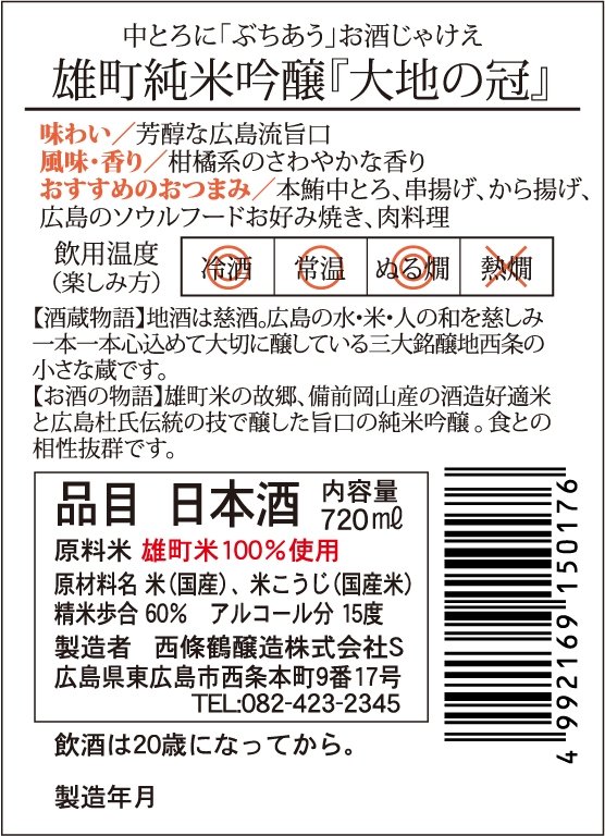 全量、雄町米の故郷・備前岡山産の雄町米と広島杜氏の伝統の技で醸しました。