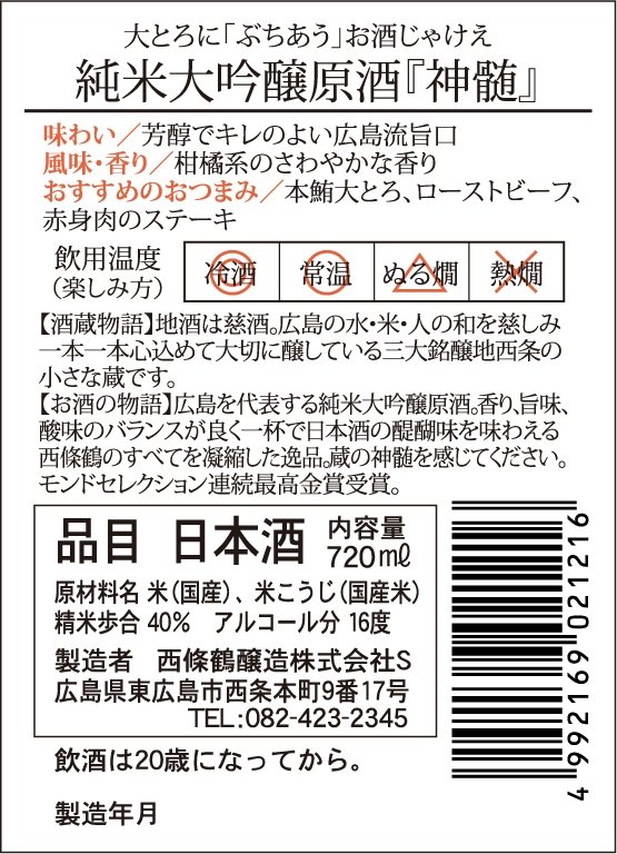 西條鶴 神髄 純米大吟醸原酒 720ml