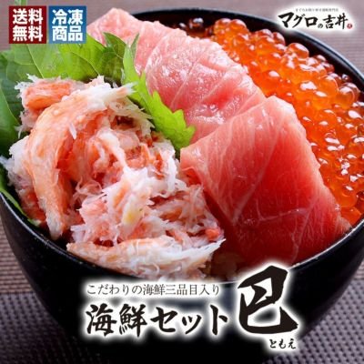 海鮮丼 巴 大変おいしくいただきました 小生単身なので 一食目は、マグロのみで 食べました、2食めはカニといくら丼で食べました。マグロは「ねばねば丼」みたいに パッケージ2にすれば、単身者にも喜ばれるんじゃないでしょうか 。 鮪の旨味抜群でした 蟹もいくらもうまかったです。また頼みます