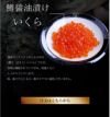 醤油漬け いくら:鱒卵(アメリカ産)、粉末水飴、食塩、醤油、本みりん、発酵調味料、リンゴ酢、砂糖、カツオエキス、昆布エキス、たん白加水分解物、チキンエキス(鶏肉を含む)/調味料(アミノ酸等)、甘味料(ソルビトール)、増粘多糖類、(原材料の一部に小麦・いくら・大豆・鶏肉・りんごを含む)