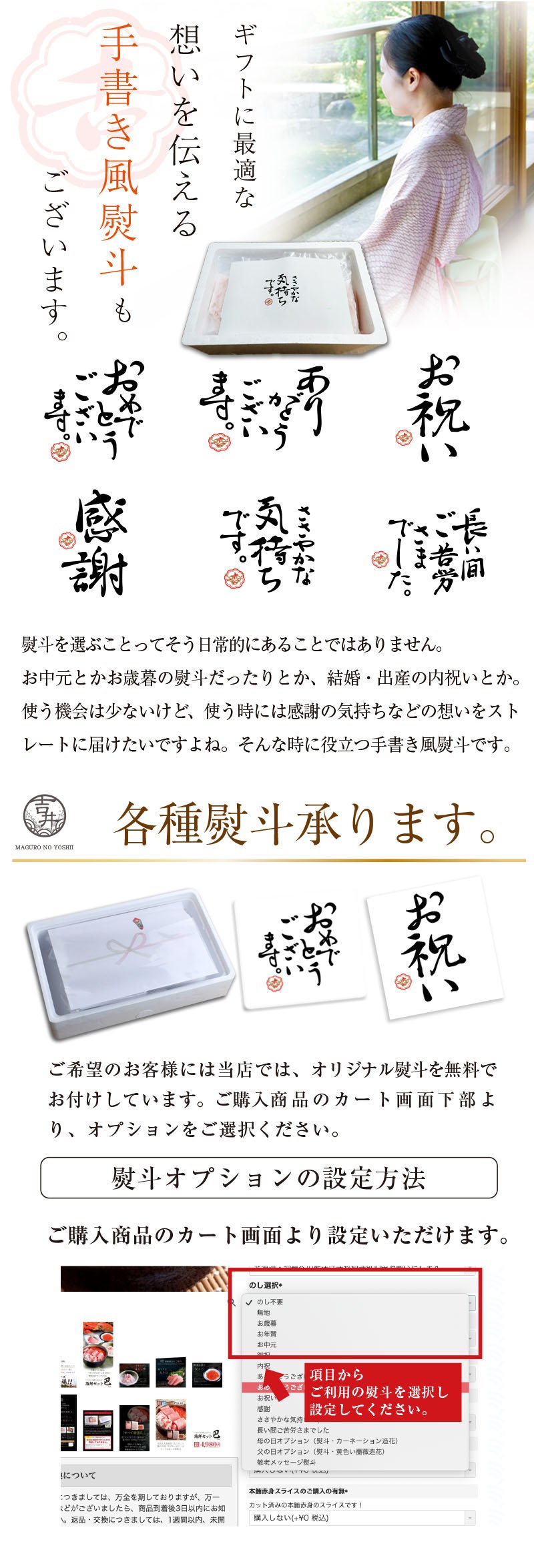 ご贈答用の場合、ご希望者には熨斗対応を致しております。