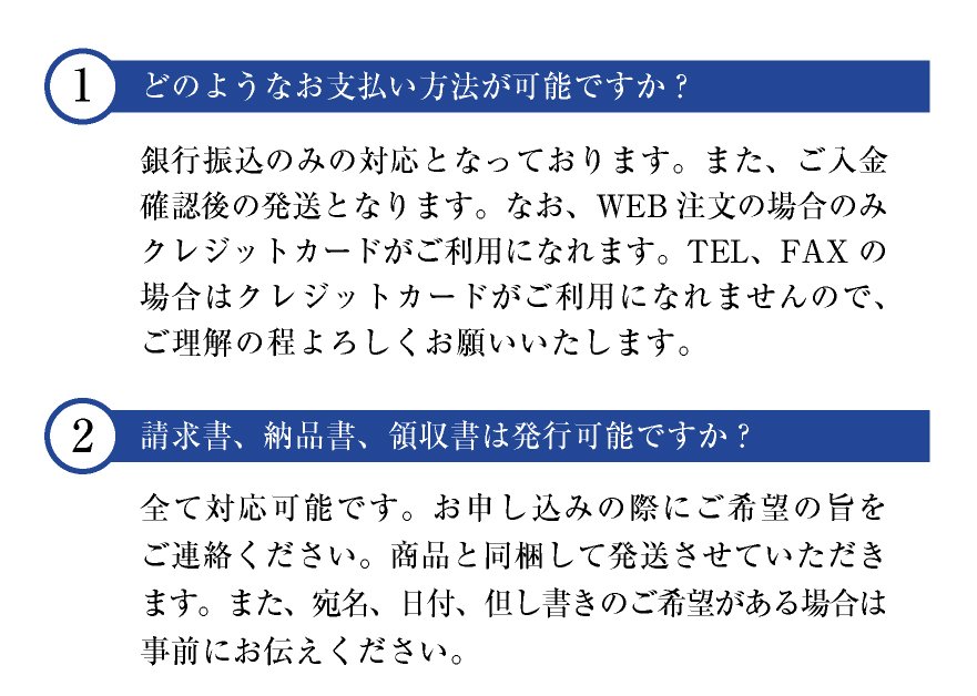 クレジットカード・銀行振込・代引き・Amazon pay・後払い決済からお選びいただけます。