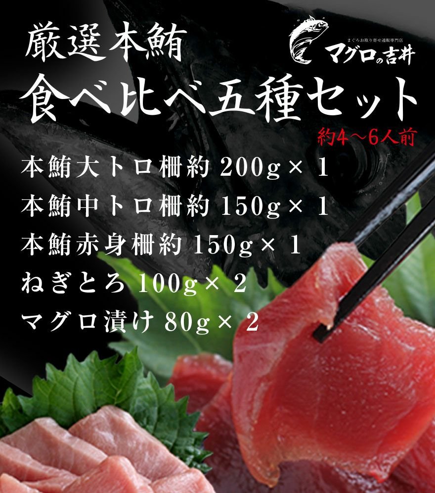 大トロ・中トロ・赤身 、ネギトロ、マグロ漬け 本鮪食べ比べ セット