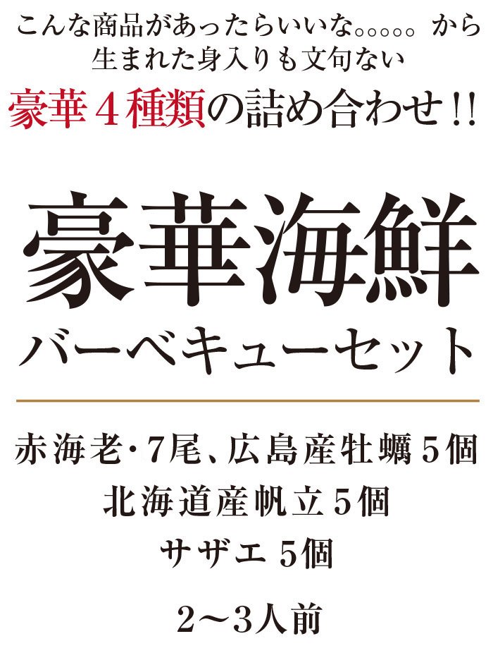 4種の 海鮮バーベキューセット 赤海老・牡蠣・帆立・サザエ 2~3人前 バーベキュー BBQ